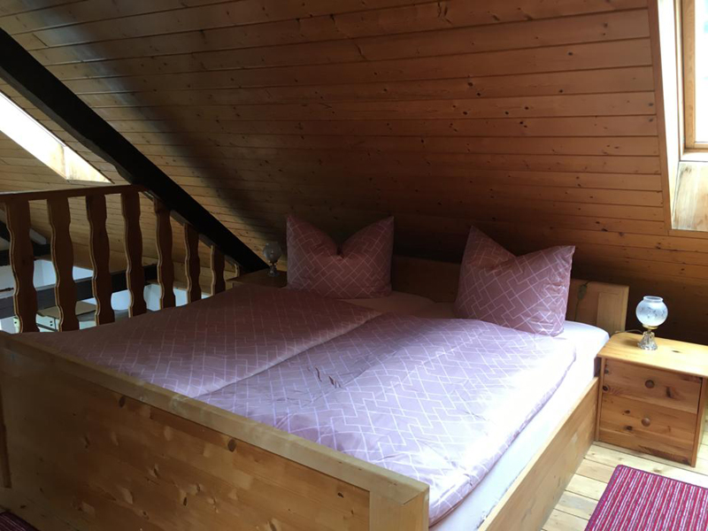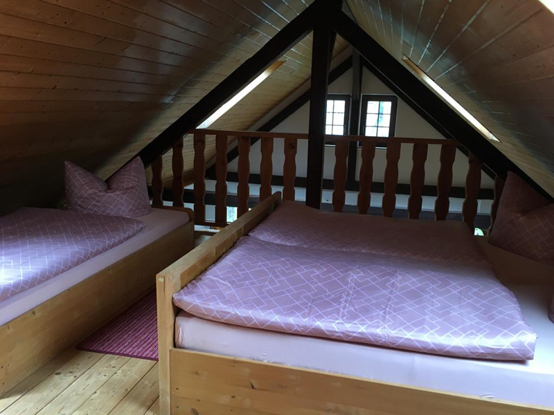 - Schlafzimmer in der Galerie mit einem Doppelbett und einem Einzelbett