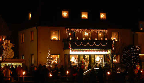 weihnachtlich geschmücktes Haus in der Hauptstraße   Die Stadt erstrahlt im Lichtermeer